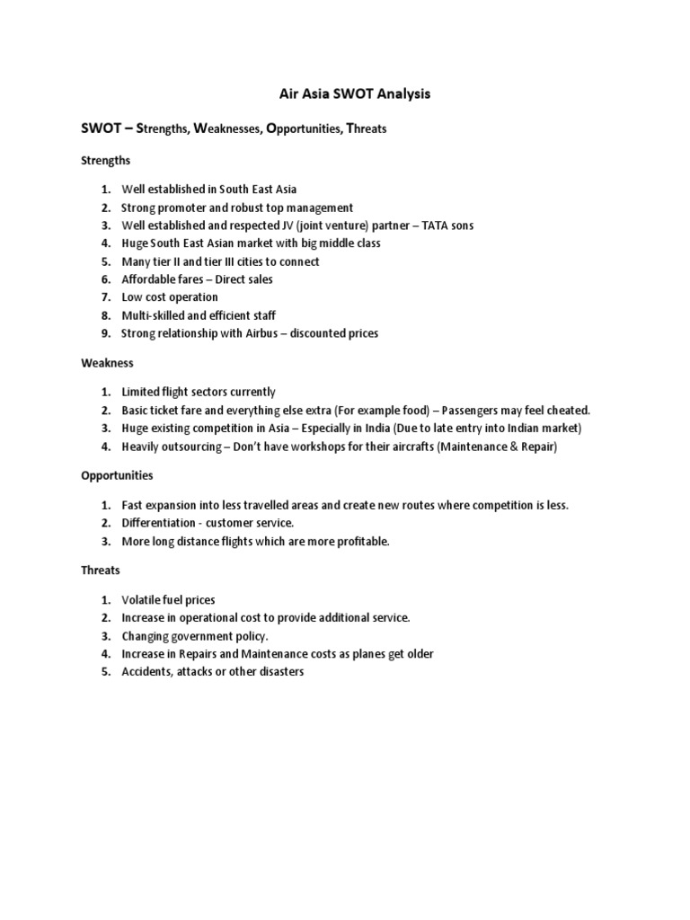Doc Swot Analysis For Air Asia Dee Tee Academia Edu